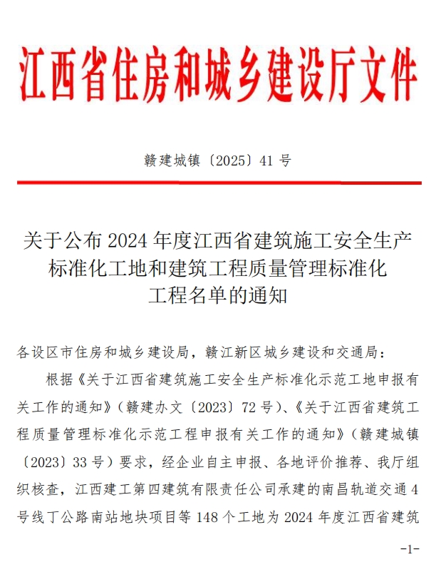 再添殊榮 | 宏盛建業(yè)集團(tuán)承建項(xiàng)目獲評2024年度江西省建筑施工安全生產(chǎn)標(biāo)準(zhǔn)化工地和建筑工程質(zhì)量管理標(biāo)準(zhǔn)化工程