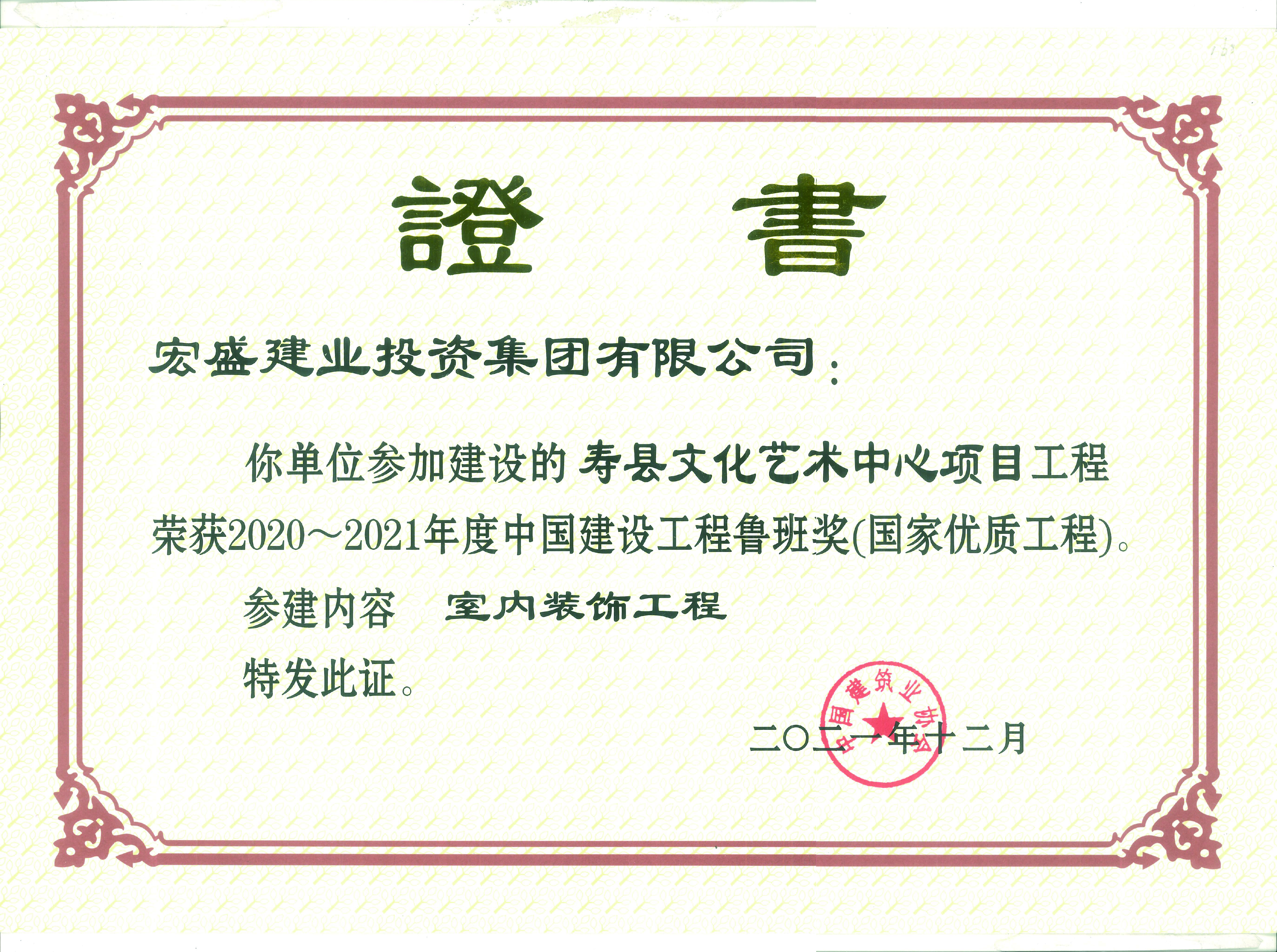 - 壽縣文化藝術(shù)中心項(xiàng)目榮獲2020-2021年度中國建設(shè)工程魯班獎(jiǎng)(國家優(yōu)質(zhì)工程)