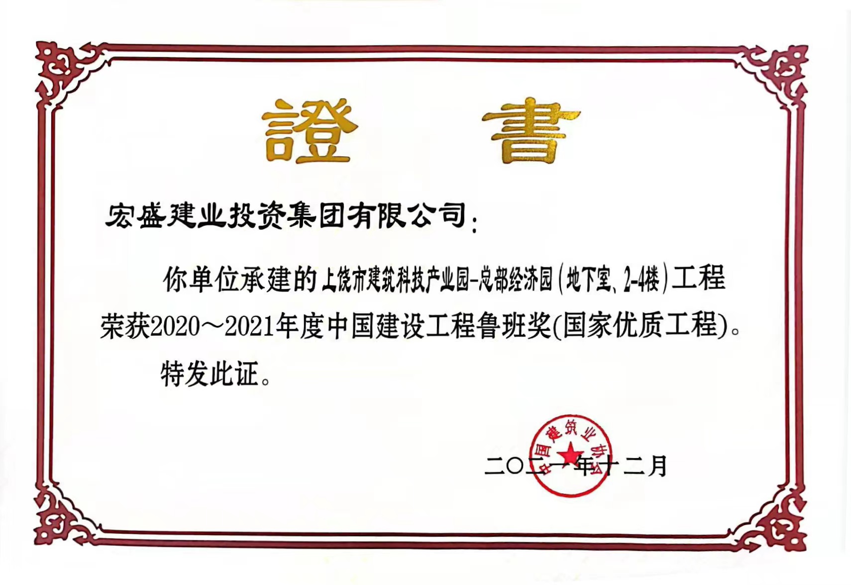 - 上饒市建筑科技產(chǎn)業(yè)園-總部經(jīng)濟(jì)園(地下室、2-4樓)工程榮獲2020-2021年度中國建設(shè)工程魯班獎(jiǎng)(國家優(yōu)質(zhì)工程)
