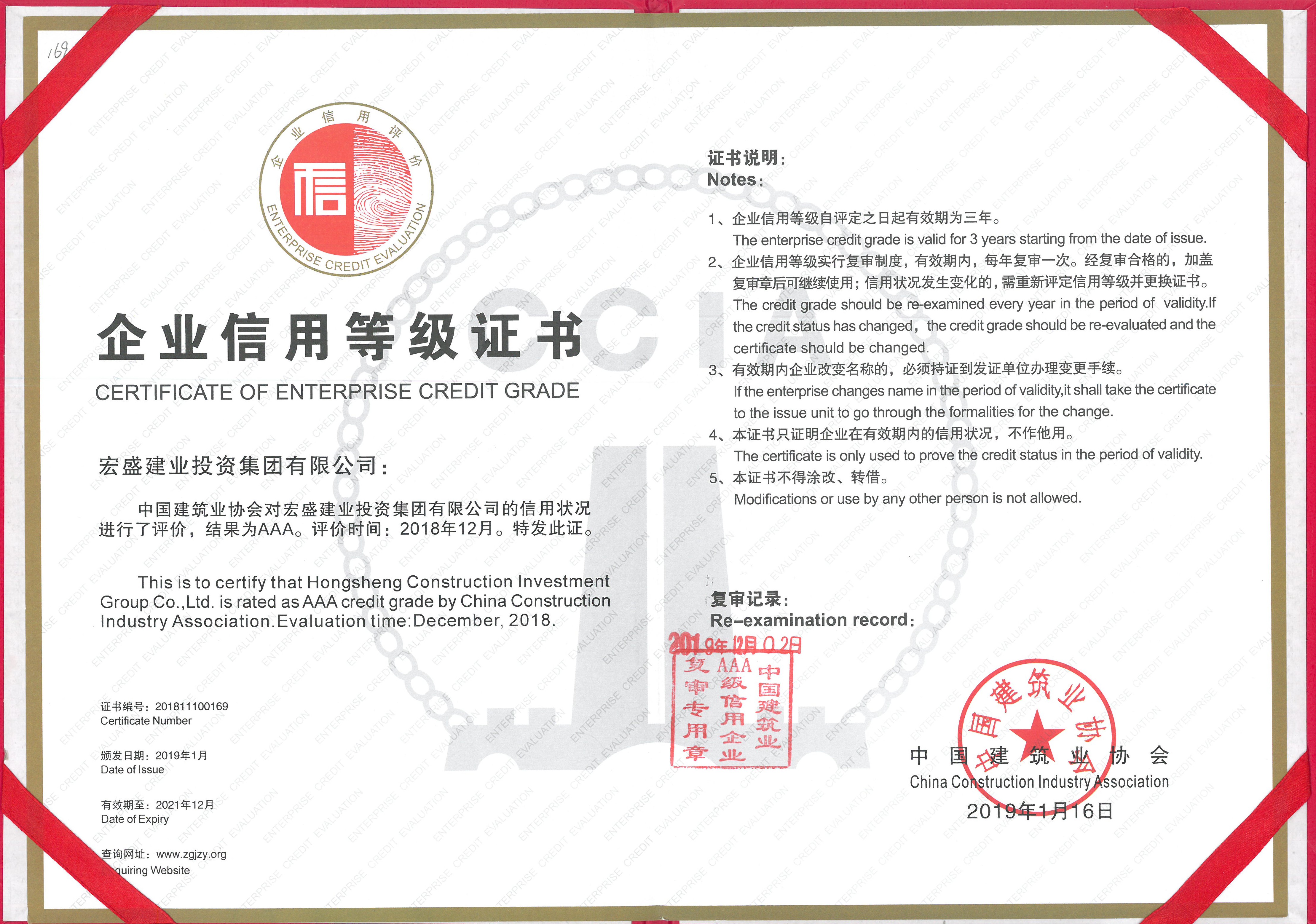018年度全國建筑業(yè)AAA級信用企業(yè)