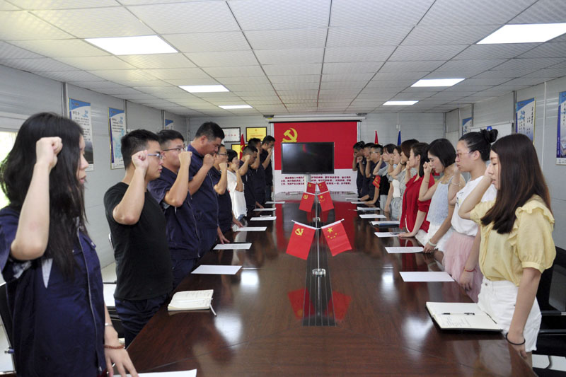 △全體參會人員在號長領(lǐng)誓下重溫入團(tuán)誓詞