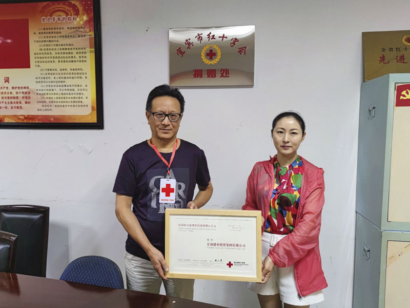 △四川省紅十字會代表為四川宜賓宏睿地產(chǎn)副總經(jīng)理何英頒發(fā)榮譽證書