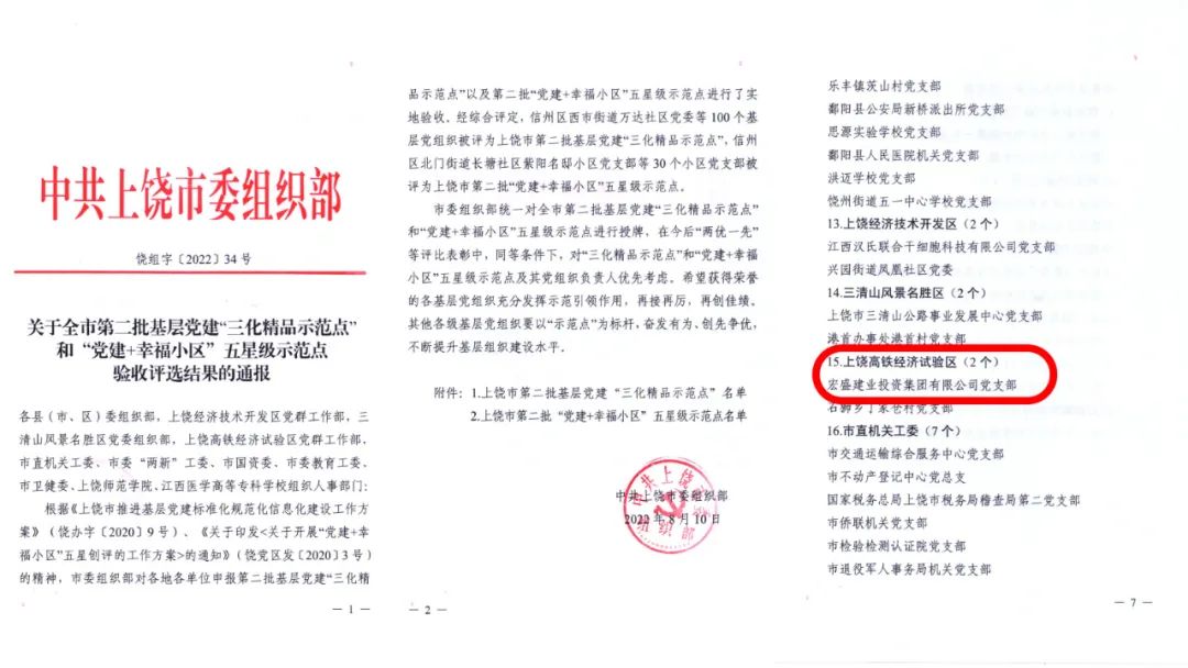 近日,宏盛建業(yè)投資集團(tuán)黨支部獲評上饒市第二批基層“三化精品示范點(diǎn)”榮譽(yù)稱號。這是上級黨組織對集團(tuán)黨建工作的高度肯定,滲透著全體黨員的辛勤付出和努力,更是對下一步黨建工作的鞭策和鼓勵。