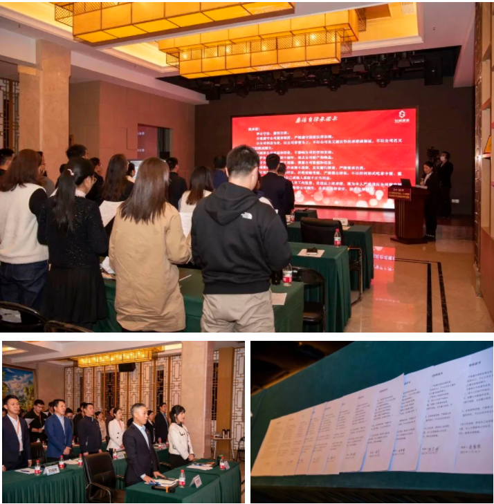 最后全體參會人員莊嚴宣誓,錚錚誓言鏗鏘有力,莊嚴承諾擲地有聲,將會議推向了高潮。宣誓結束后,全體人員鄭重簽字承諾。