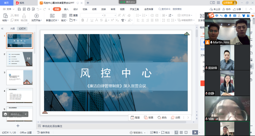 風(fēng)控中心線上組織《廉潔自律管理制度》深入宣貫會議,將廉潔文化內(nèi)化于心、外化于行,進一步增強守初心、擔(dān)使命的思想自覺和行動自覺。