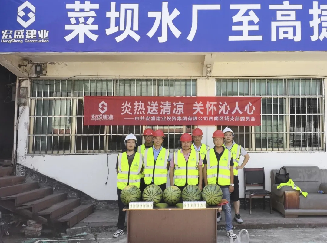 8月的宜賓戶外溫度高達(dá)36℃,在本次慰問活動中,四川分公司項目部劉昌興經(jīng)理與宜賓辦事處汪永代表西南支部,一起來到宜賓菜壩水廠至高捷水廠第二管線工程項目送上問候和清涼。西南區(qū)域黨支部精心籌備,采購了清涼藿香正氣液藥品禮包、水果西瓜、飲用水,為在戶外作業(yè)的一線工友送去清涼。同時,叮囑項目部要全面落實好安全生產(chǎn)主體責(zé)任和高溫安全生產(chǎn)措施,有效預(yù)防高溫中暑和各類生產(chǎn)安全事故發(fā)生,在工作作業(yè)中要注意加強員工保護(hù),確保項目一線人員身體健康。