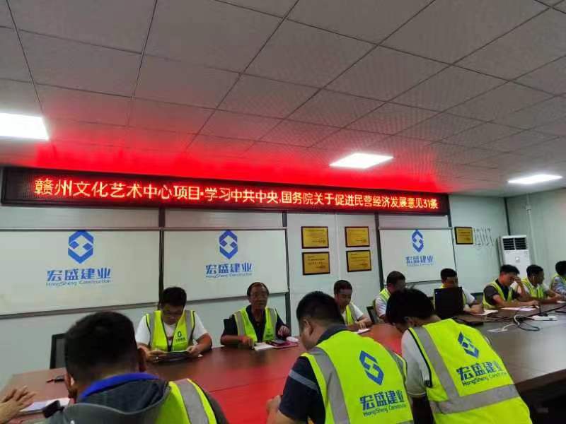 主題教育開展以來,贛州文化藝術(shù)中心項(xiàng)目部臨時(shí)黨支部依托項(xiàng)目“準(zhǔn)軍事化”管理,積極推動主題教育向工程一線延伸、向工作實(shí)踐拓展,把抓思想與抓作風(fēng)、抓業(yè)務(wù)與抓管理有機(jī)統(tǒng)一起來,確保以一流的速度、一流的質(zhì)量把項(xiàng)目建設(shè)成安全工程、滿意工程、精品工程。
