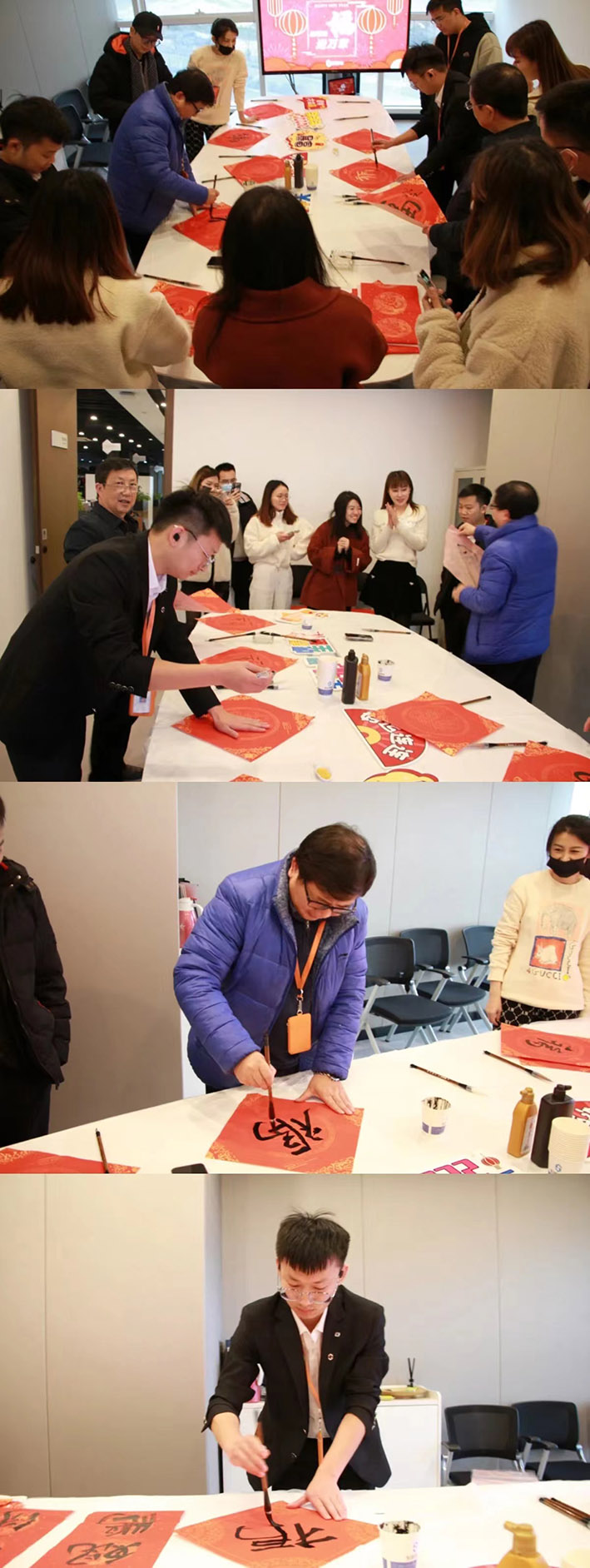 活動(dòng)現(xiàn)場(chǎng)熱鬧非凡,墨跡飄香,大家紛紛揮毫潑墨,大顯身手,一個(gè)個(gè)福字躍然紙上,寄托著人們對(duì)新春的憧憬和向往。宏盛真的是藏龍臥虎,有些同事觀其力而不失,身姿展而不夸,筆跡流水行云,集團(tuán)財(cái)稅管理中心吳清山吳總的墨寶成為了大家爭(zhēng)先搶奪的焦點(diǎn),也有一些同事是第一次拿起毛筆感受傳統(tǒng)文化的魅力?;顒?dòng)結(jié)束后大家都拿著自己親手寫的“?!弊忠黄鸷嫌?,每個(gè)人的臉上都洋溢著幸福的微笑。