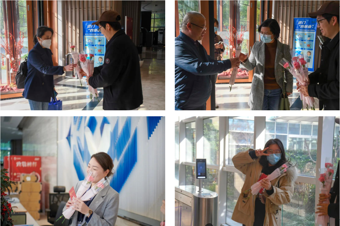 當(dāng)天,宏盛建業(yè)一樓大廳被布置一新,“宏盛藍”與“巾幗紅”碰撞出鮮明的活力,過節(jié)的喜悅洋溢在女工友們的臉上,她們們手捧鮮花,笑容甜入心坎。員工們紛紛表示,平時工作很忙,也不會給自己過什么節(jié)日,逢年過節(jié)都會收到公司的慰問和禮物,這她們的生活充滿了小驚喜,工作幸福感也大大提升!