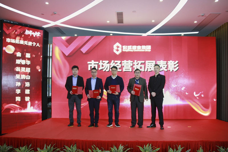 集團(tuán)市場管理中心總經(jīng)理毛智超頒發(fā)市場經(jīng)營拓展獎。6位受表彰人員分別是:俞磊、康春華、李建、吳清山、陶駿、孫浩。
