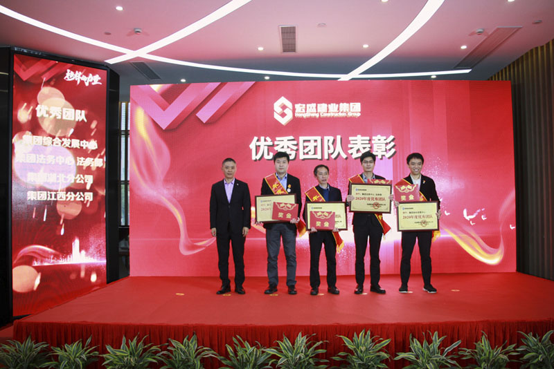 集團(tuán)副董事長、總裁周金旺頒發(fā)2020年度優(yōu)秀團(tuán)隊獎。8個受表彰團(tuán)隊分別是:集團(tuán)綜合發(fā)展中心、集團(tuán)法務(wù)中心 法務(wù)部、集團(tuán)湖北分公司、集團(tuán)江西分公司、上饒市建筑科技產(chǎn)業(yè)園工程項目總承包部、四川宜賓宏睿房地產(chǎn)開發(fā)有限公司 開發(fā)營銷部、上海建業(yè)信息科技股份有限公司 研發(fā)中心、上饒市建筑科技產(chǎn)業(yè)園投資管理有限公司 工程中心。