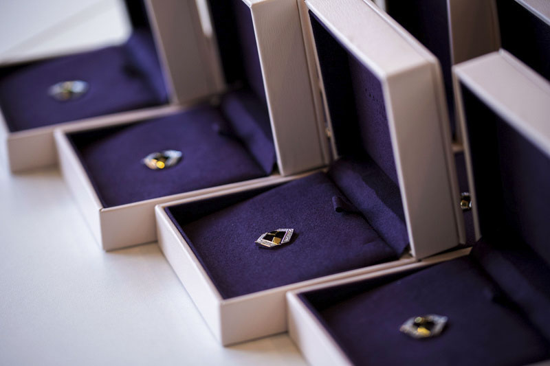 宏盛定制司徽,以2塊黃金+48顆鉆石作為主材質,以宏盛logo作為司徽樣式。集不菲價值、深刻寓意、無上榮譽于一體。