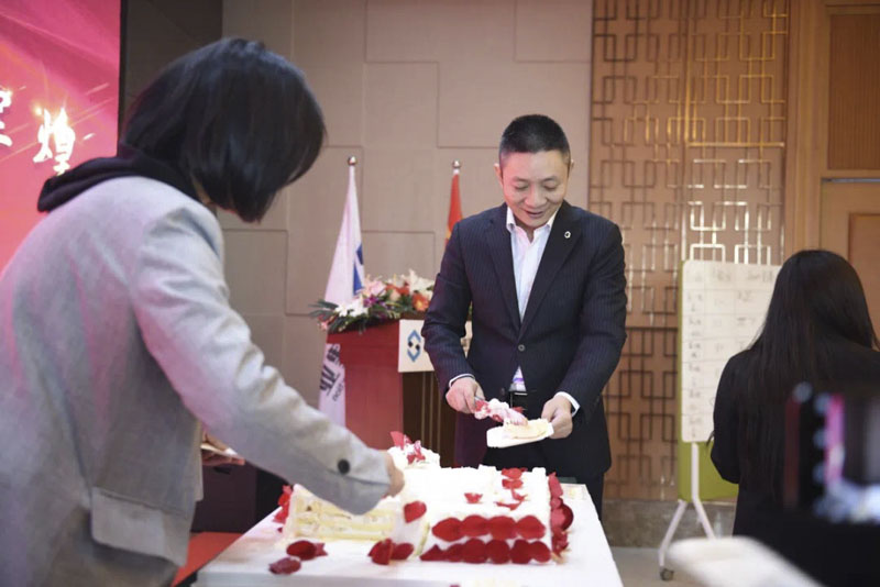 并現(xiàn)場切蛋糕分發(fā)到每個人手上
