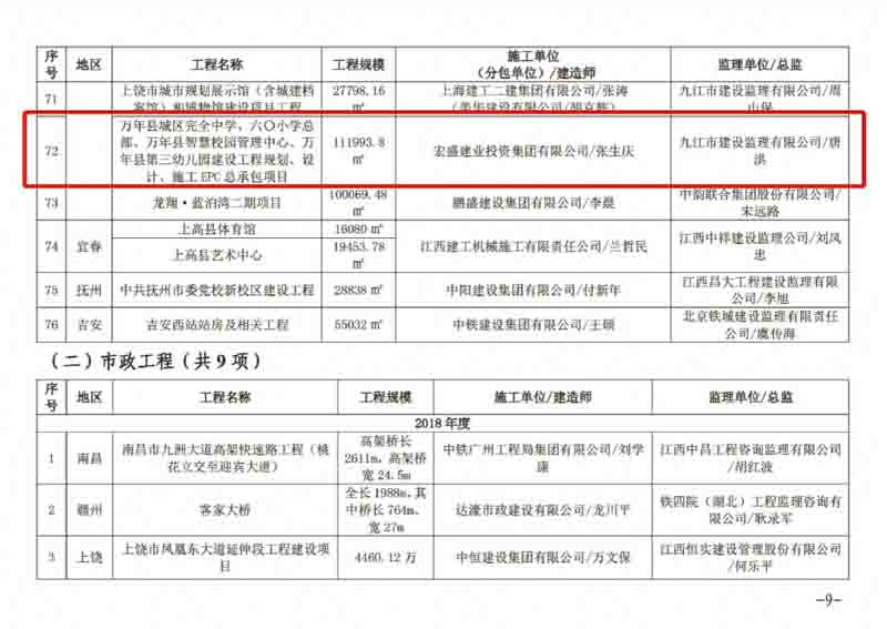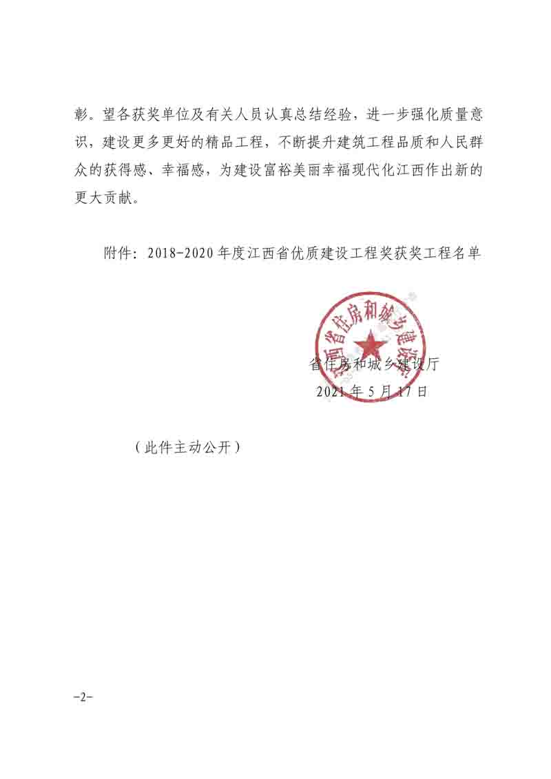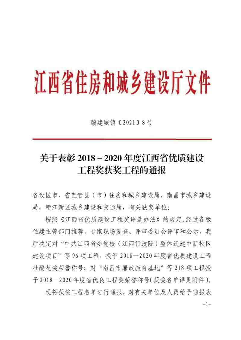 公布2020年度江西省優(yōu)質(zhì)建設(shè)工程獎(jiǎng)