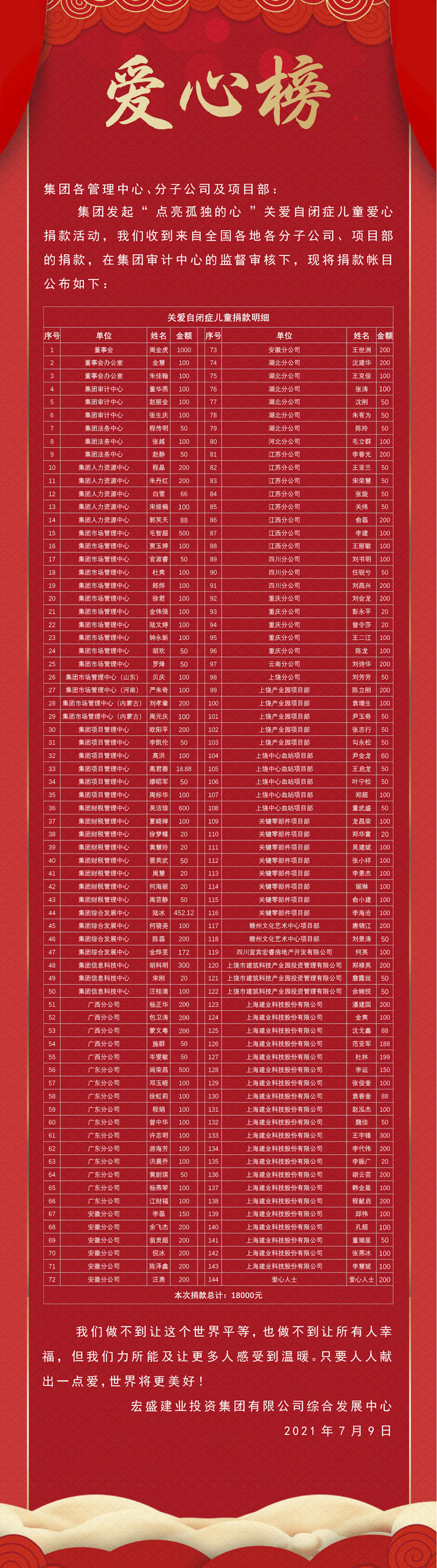 同時,宏盛集團(tuán)發(fā)起全集團(tuán)捐款活動,我們收到全國各地分子公司、項目部的愛心捐款,大家紛紛慷慨解囊,為這群特殊的孩子送去溫暖和祝福。宏盛集團(tuán)和上海建業(yè)向上海市慈善基金會靜安區(qū)代表機(jī)構(gòu)共計捐贈21000元,定向用于上海靜安越量兒童心智發(fā)展訓(xùn)練中心教具項目。