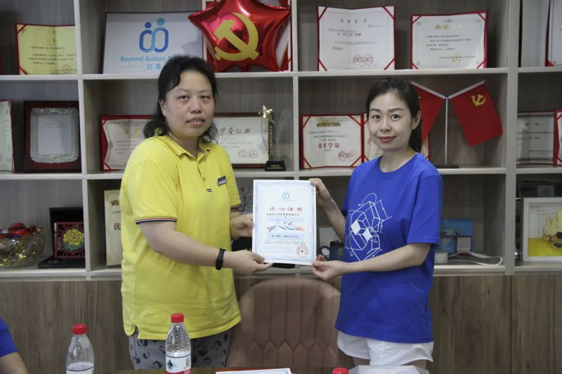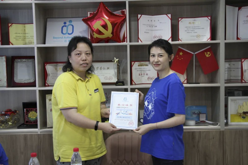 7月9日,宏盛集團(tuán)及上海建業(yè)員工代表一行9人一起來到上海靜安越量兒童心智發(fā)展訓(xùn)練中心,試著了解并走進(jìn)他們的世界。機(jī)構(gòu)領(lǐng)導(dǎo)首先給我們介紹了自閉癥兒童的相關(guān)知識以及這群孩子的特殊性,讓大家先有一個初步了解,并帶著我們參觀了整個機(jī)構(gòu)。