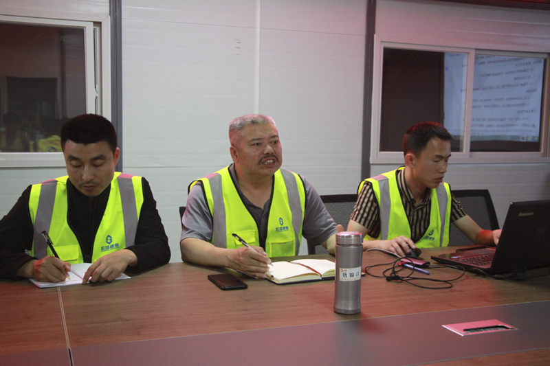 在項(xiàng)目負(fù)責(zé)人“老唐”的領(lǐng)導(dǎo)下,項(xiàng)目部每天都會盡可能的抽出半個(gè)小時(shí)組織大家開個(gè)會,花十分鐘左右,對當(dāng)天工作做一個(gè)總結(jié),并對第二天工作任務(wù)和注意事項(xiàng)做一個(gè)布置。隨后,再花二十分鐘的時(shí)間,帶領(lǐng)大家一起學(xué)習(xí),內(nèi)容從項(xiàng)目管理制度體系宣貫,到現(xiàn)場施工作業(yè)注意事項(xiàng)。根據(jù)實(shí)際情況,偶爾還會組織大家一起觀看紅色經(jīng)典,傳承紅色基因。